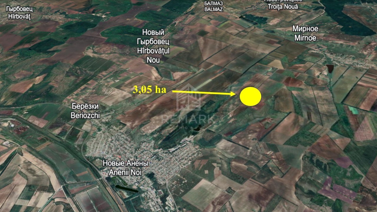 Amplasat în extravilanul or. Anenii Noi, pe marginea traseului R-30.Suprafața totală: 3.05 ha.