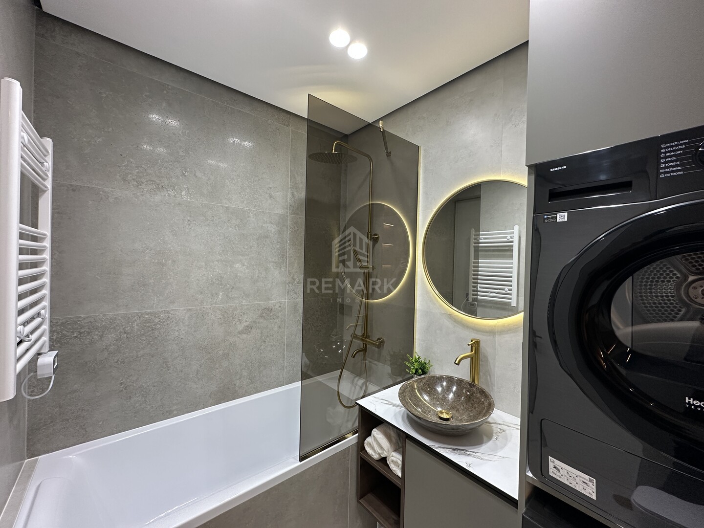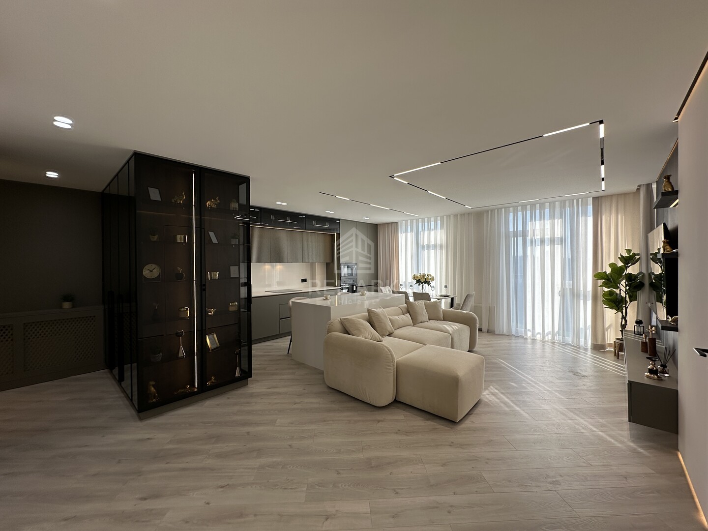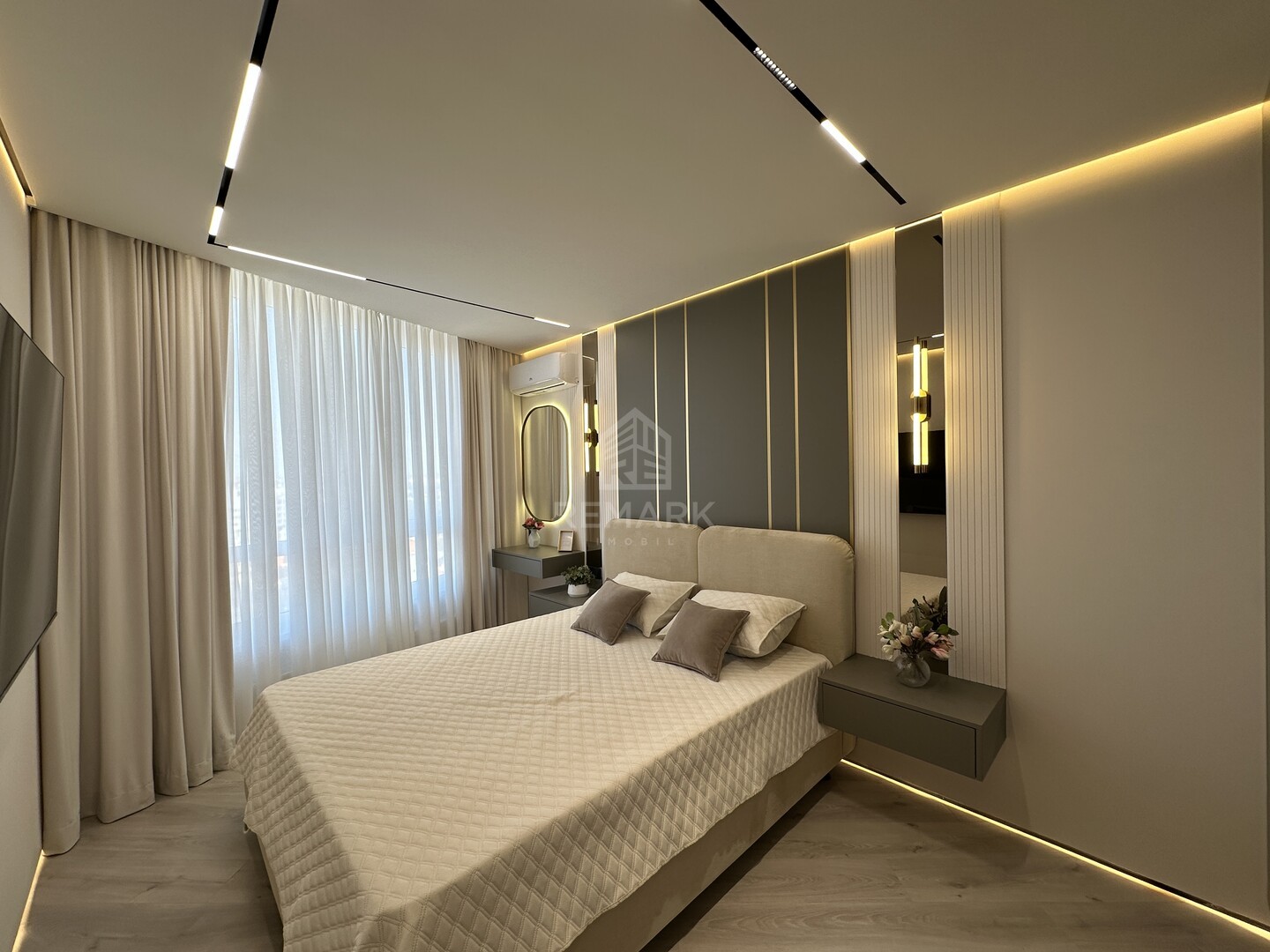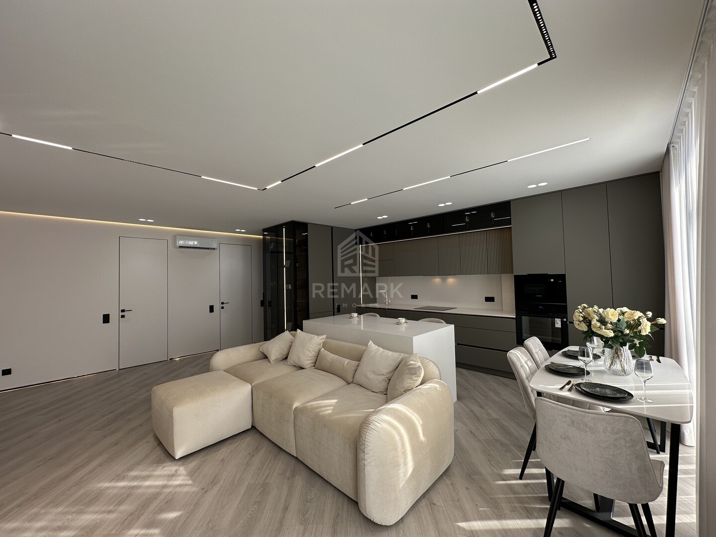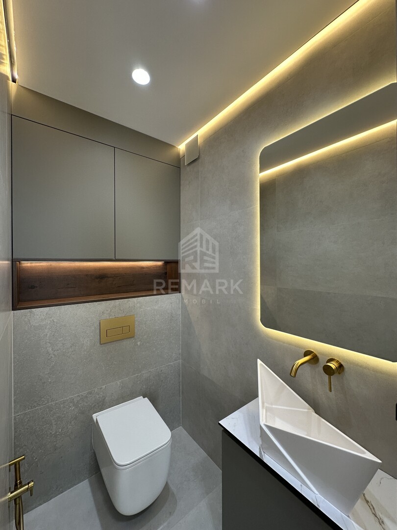 Cu o suprafață de 76 mp, apartamentul are o compartimentare eficientă: 2 dormitoare, living cu bucătărie open-space, 2 blocuri sanitare, coridor și o terasă cu vedere superbă asupra orașului.