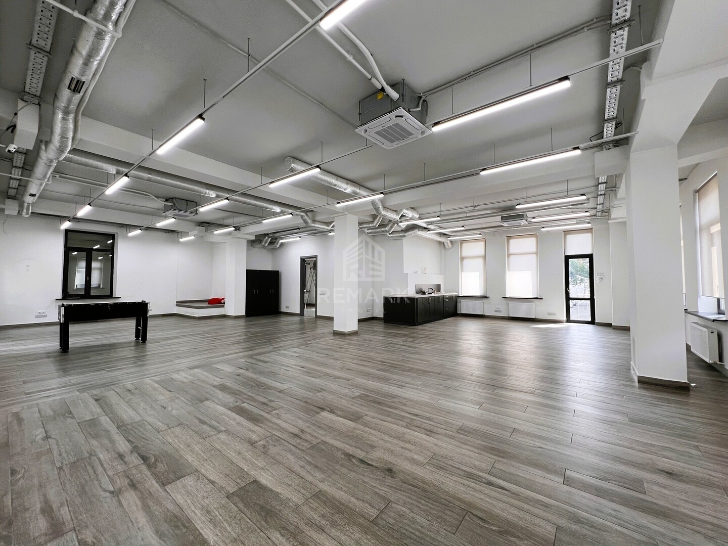- Compartimentat în open-space, cabinet, bucătărie, și bloc sanitar.