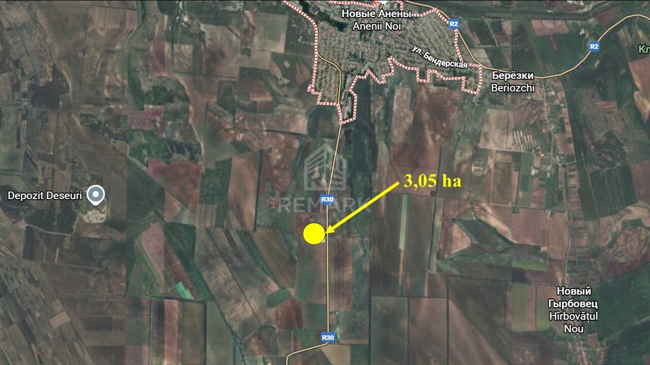 Amplasat în extravilanul or. Anenii Noi, pe marginea traseului R-30.Suprafața totală: 3.05 ha.