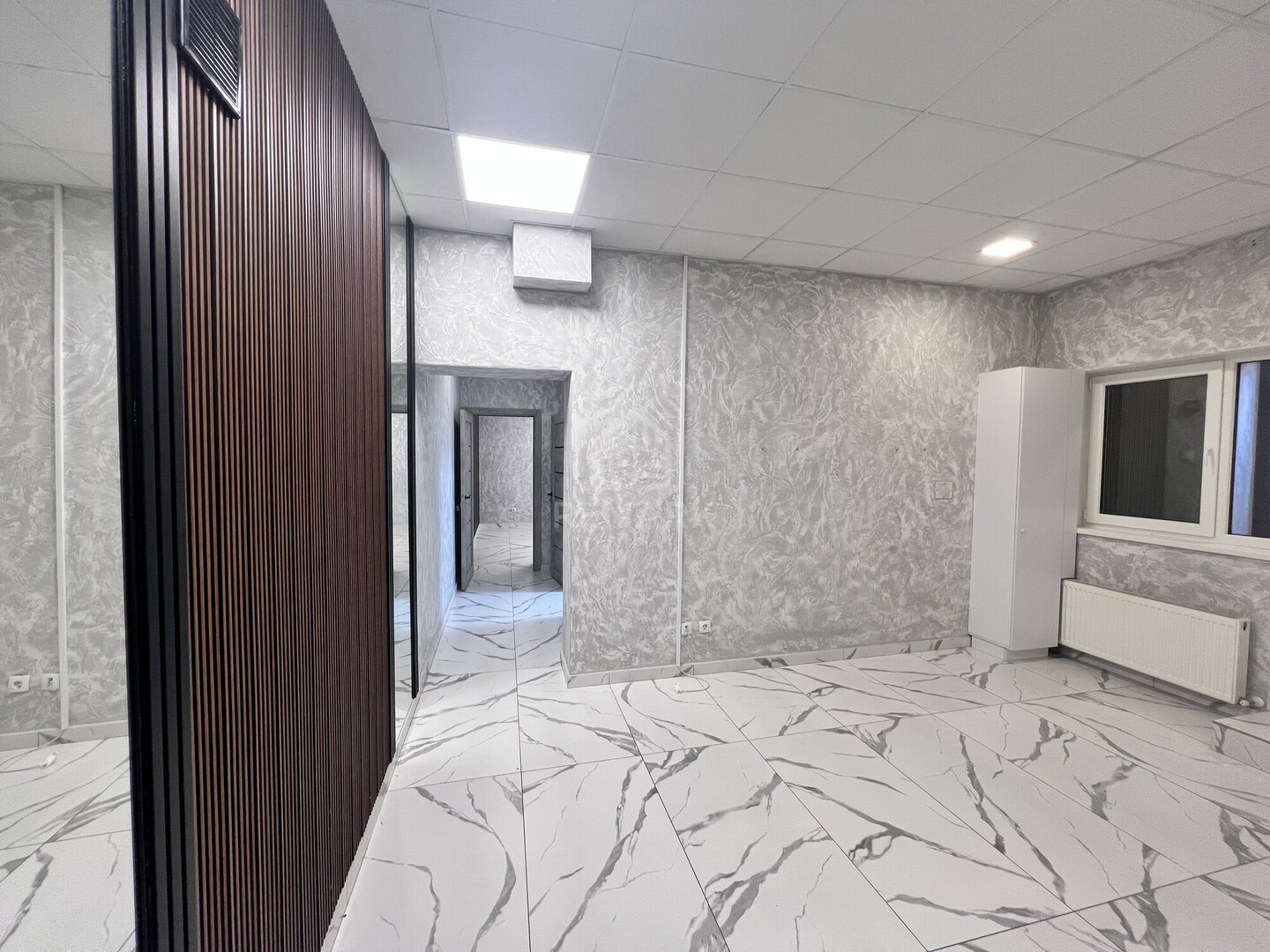 — Разделение на 4 кабинета, 1 санузел.